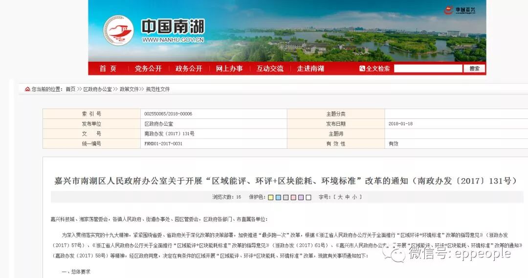 2.南湖区“区域环评+环境标准”改革工作指导意见