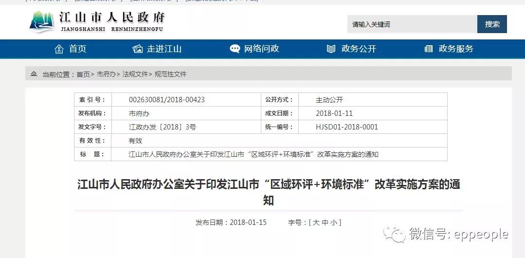 江山市人民政府办公室关于印发江山市“区域环评+环境标准”改革实施方案的通知