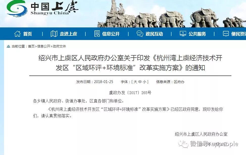 绍兴市上虞区人民政府办公室关于印发《杭州湾上虞经济技术开发区“区域环评+环境标准”改革实施方案》的通知