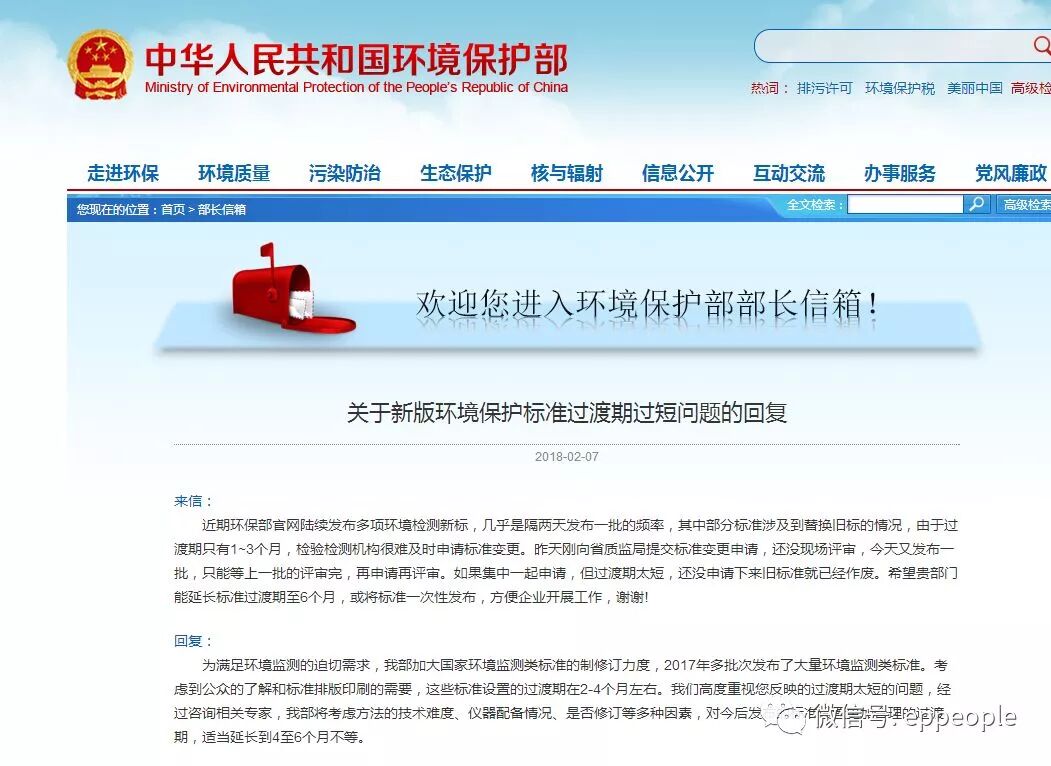 关于新版环境保护标准过渡期过短问题的回复